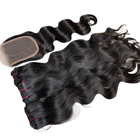 Raw Indian Hair 3 Bundles With 5X5" Closure